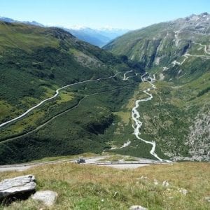 Lake Sarner, local excursion over four mountain passes, 3 of them over 2,000 metres high, the Brunig, Susten, Furka and Grimsel passes ( combined altitude of 8,859 metres or 28,142 ft)
