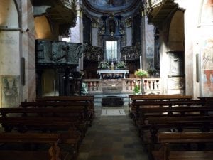 At Gravellona we turn south to Omegna at the northern tip of Lake Orta, the first of our Italian lakes. We then drive down the eastern shore of this pretty, yet little-known, lake to Orta San Giulio where our stylish hotel a converted monastery is based on the lake in the centre of this beautiful medieval town, see photos below :