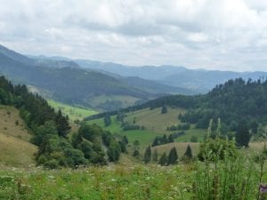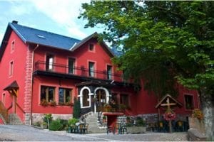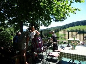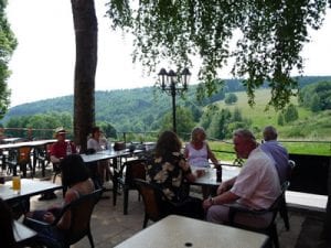 Less than a mile over the summit is our lunch stop a traditional German auberge, where we can have lunch on the terrace with stunning views, see photos below: