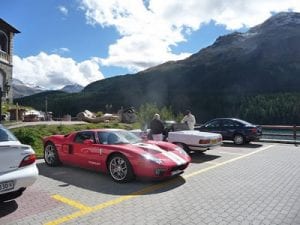 Descending the Brunig Pass we turn left to Meiringen and drive over the Grimsel Pass to Gletch, (click here to see a video of a Ford GT driving up the Grimsel Pass )