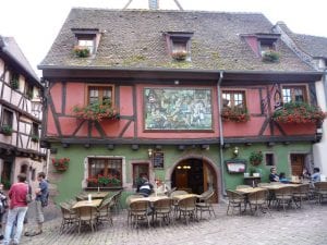 One of France's most beautiful villages, Riquewihr, is famous for its wine and its charming olde-worlde buildings, see photos below.