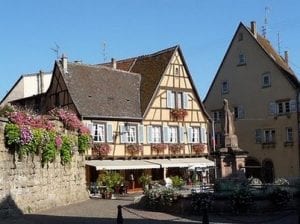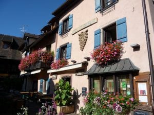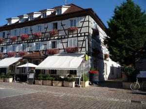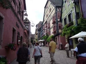 After lunch, we continue on scenic country roads eventually arriving in Riquewihr, where our hotel is located, in France's Alsace region.