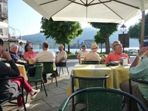 At the top of Lake Lugano at Porlezza, we leave the lake and drive east over the mountain pass by Lake Piano to Lake Como and Menaggio our afternoon coffee stop.