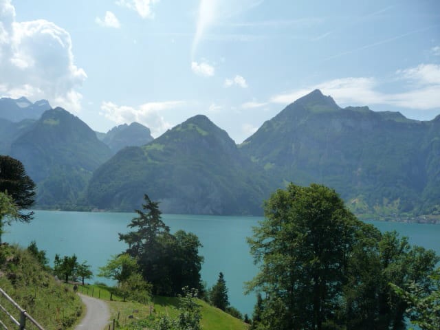Descending the Susten pass we then drive south through a picturesque valley to Lake Lucerne, where our lunch stop has stunning views over the lake, see photo below: