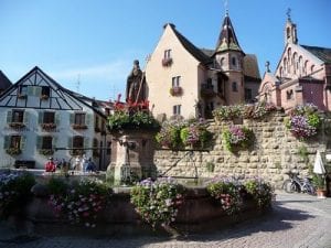 Leaving Riquewihr, we drive to Eiguisheim, another of France's most beautiful villages, where we stroll around the picturesque streets, (see photos below).