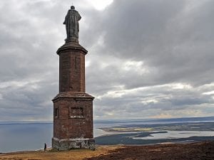 Here we stop to admire the Sutherland Monument, a 30ft high statue on a 79ft column on the summit of Ben Bhraggie created by the Duke Of Sutherland who forcibly evicted 15,000 crofters from his million-acre estate in 1834!